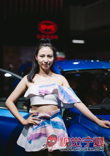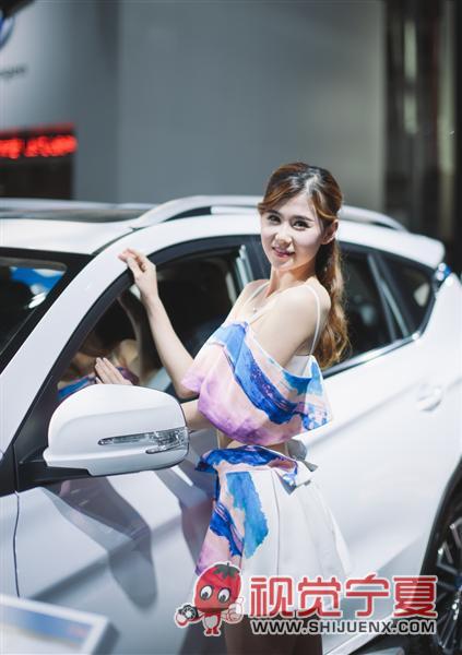 组照说明: 车展上的车模。