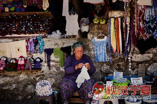 土耳其街头缝纫的妇女—丝绸...