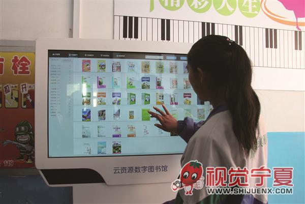 闽宁中学学生在使用电子图书...