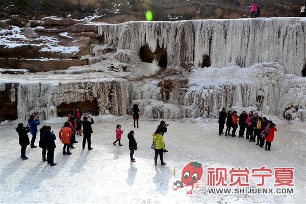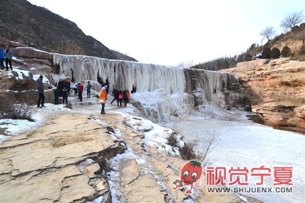 游客参观固原茹河冰瀑—风光...