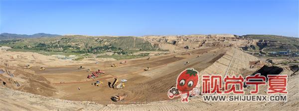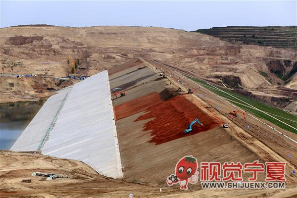 施工中的固原中庄水库大坝—...