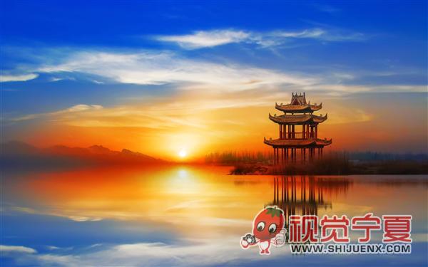 银川阅海落日余晖— 风光景...