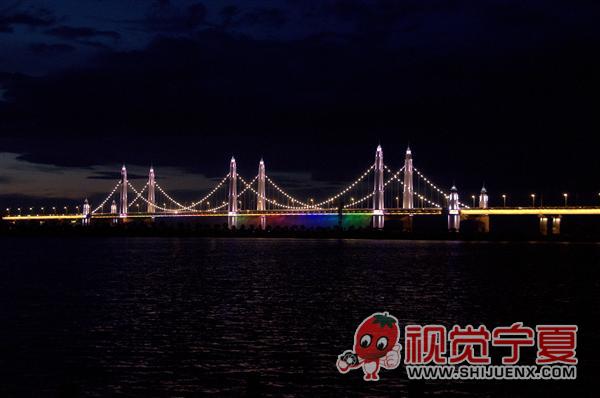 灯光璀璨的银川滨河大桥—财...