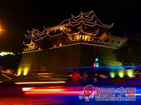 银川玉皇阁夜色—财经