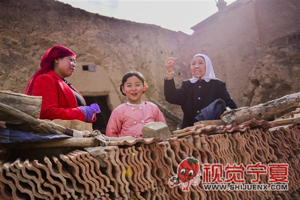 西海固窑洞前的一家三代人—...