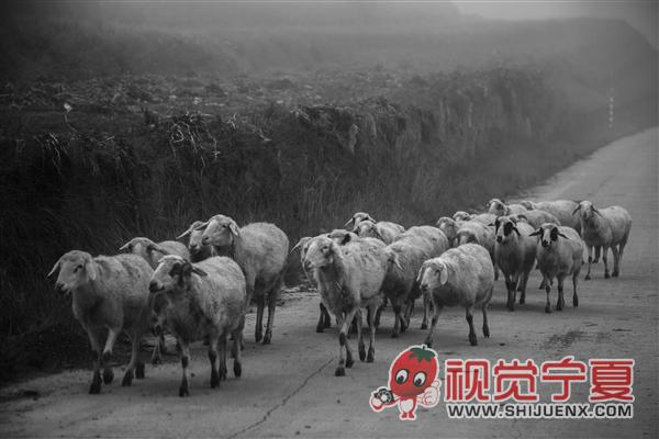 大雾中找草吃的羊群—回乡风...