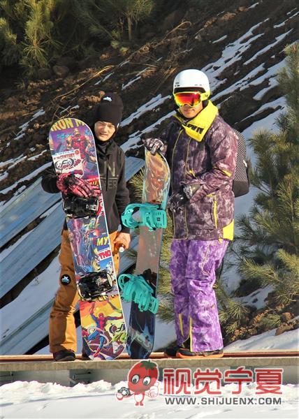 来六盘山滑雪场滑雪的单板爱...