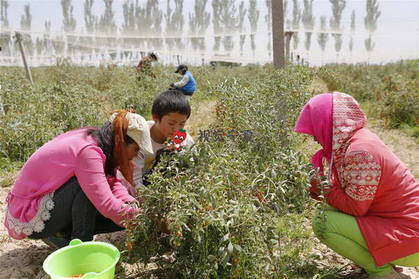 闽宁协作扶贫产业-摘枸杞