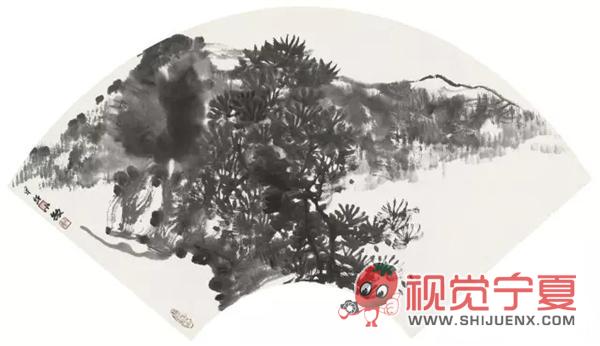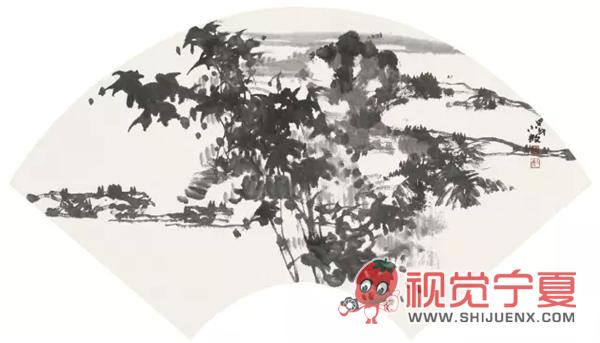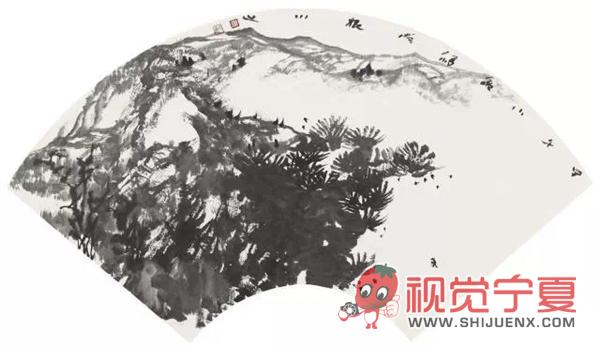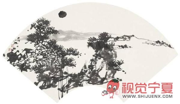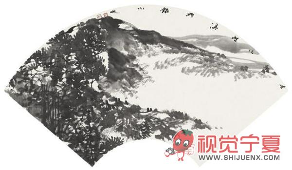 扇形水墨国画