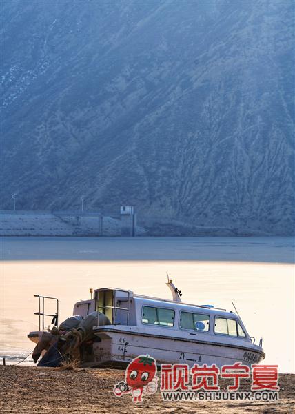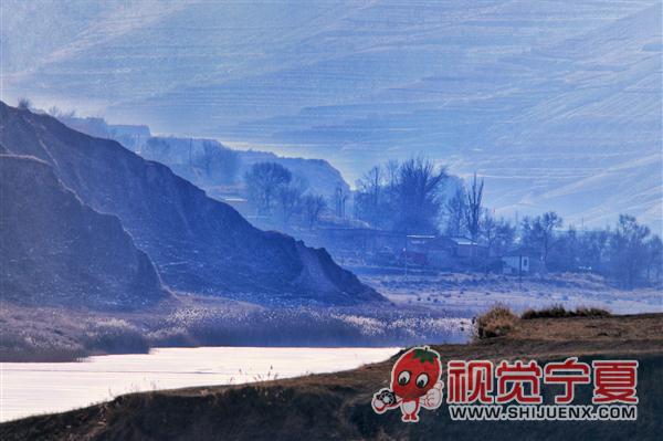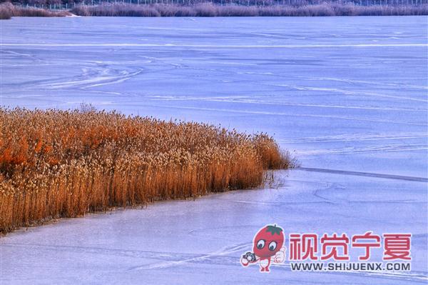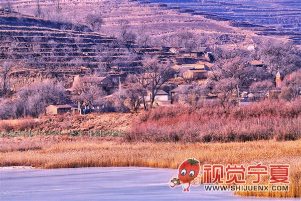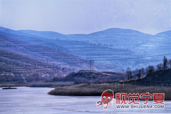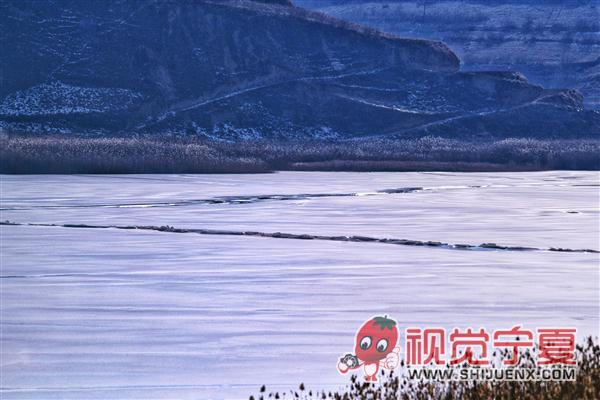 固原冬至河冬冰湖景色