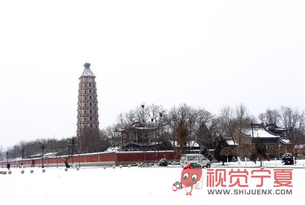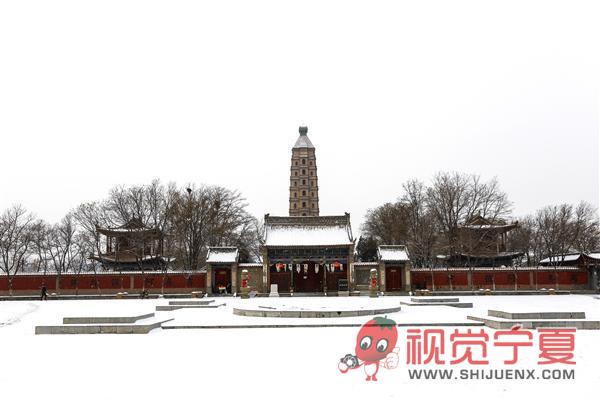 雪中的银川海宝塔寺