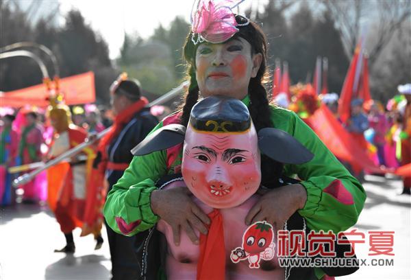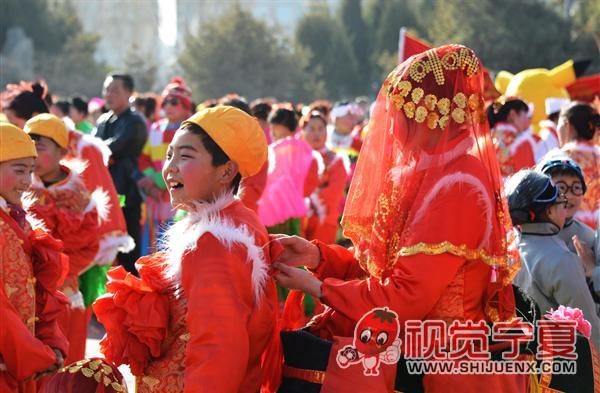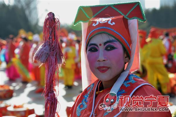 银川人民广场社火表演参演..