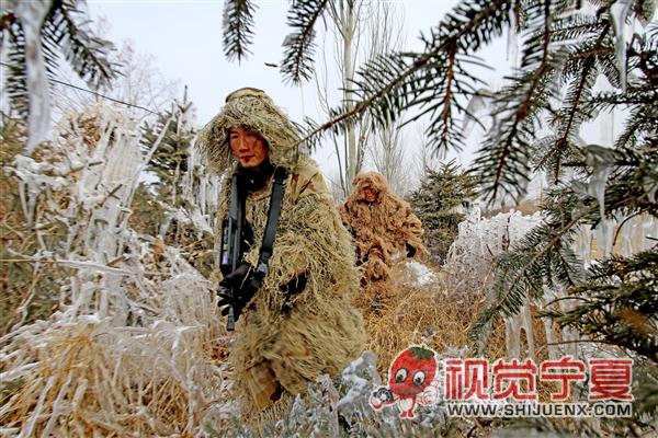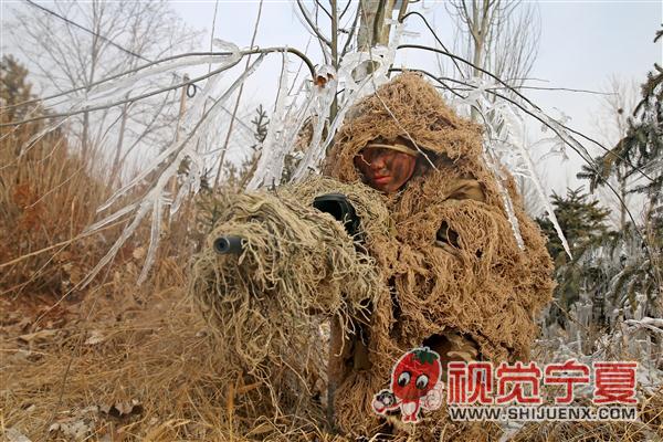 冰雪中的武警狙击手