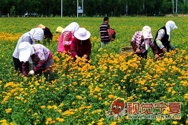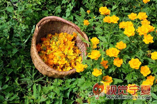 隆德金莲花采摘