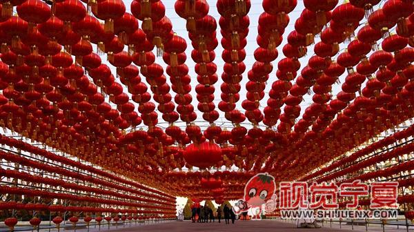 中国花卉博览园大红灯笼高高挂—...