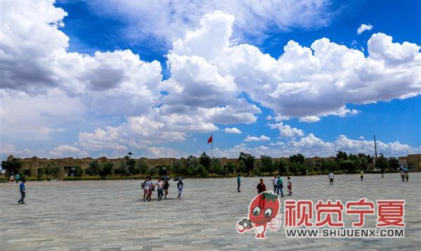 蓝天白云的水洞沟旅游区—风光景...